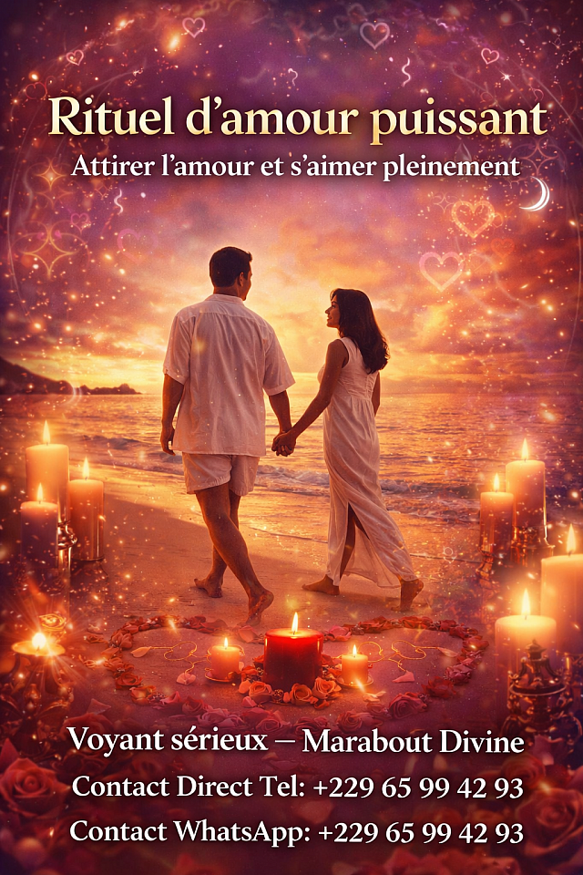 L'Amour de votre vie est parti/e, et vous souhaitez vite son retour ? Vous vous disputez fréquemment et Votre mariage tourne à l'eau?.. Retour affectif rapide et retour affectif entre lesbiennes et gay et pour les femmes stériles pour le retour immédiat de l’être aimer Spécialiste de la voyance amour Voyance pour couple Quel avenir pour mon couple ? Je vous propose de me poser une question sur le plan sentimental Avec une personne pour laquelle vous avez des sentiments ou même des doutes. Il peut s’agir d’une personne que vous connaissez, d’une relation qui n’aboutit pas... Ou bien même d’une personne que vous n’avez pas encore rencontrée mais qui occupe vos pensées. Vous cherchez des réponses rapides et gratuites à votre avenir sentimental ? Votre ex compagnon tarde à revenir vers vous ? Est-ce qu’il vous aime encore ? Est-ce qu’il est réellement sincère avec vous ? Et le grand amour, c’est pour quand ? Votre amant est-il fidèle ? Le retour affectif efficace par magie blanche est une harmonisation des relations, similaire au processus qu’on appelle «faire tomber amoureux». Ce retour affectif rapide faire partie des plus grand rituel principale demander par l’homme pour sauver son couple . Bienvenue dans le monde ésotérique du retour affectif rapide. Medium sérieux compétent Solution Divine il est un grand spécialiste du retour d’affection rapide avec une longue expérience certifié sur le plan mondial surtout en Europe et en Afrique . le retour affectif rapide et immédiat a renforcer les sentiments existants entre lui et moi et surtout renouer le dialogue qui était rompu. Nous nous revoyons maintenant dans de meilleurs augures et essayons de rebâtir une relation stable qui dure dans le temps. WHATSSAP / TÉL: +229 65 99 42 93